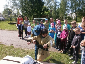 Пожарные устроили для детей показ техники, приемы работы с пожарно-техническим вооружением, все примеряли боевую одежду, посидели в пожарно-спасательных автомобилях, были ознакомлены с работой подразделений. В ходе мероприятия были проведены конкурсы, викторины, эстафеты.
