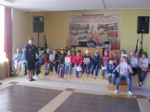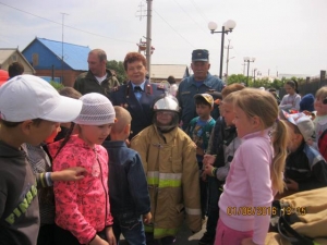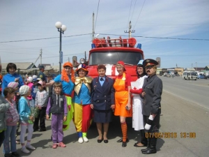 На площади были организованы конкурсы, викторина по пожарной безопасности. Ребята с большим удовольствием надевали боевую одежду пожарного. Пожарные показали мастер-класс по тушению пожара.