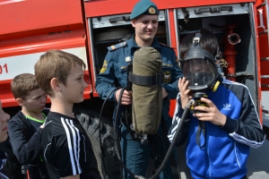 Ребята с интересом примеряли боевую одежду, рассматривали, из чего она сделана. Некоторые не раз подбегали к огнеборцам, приводили друзей и задавали бесконечные вопросы: «А летом пожарные тоже в этой боевке работают, подстежку не снимают?», «А где можно отучиться на пожарного?», «А сколько весит снаряжение пожарного?»