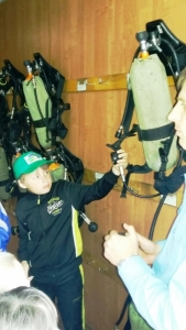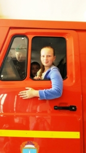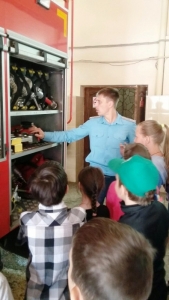 При посещении пожарного депо ребята смогли подробнее познакомиться с профессией пожарного и техникой, помогающей тушить огонь. Им продемонстрировали боевую одежду пожарного и дыхательные аппараты на сжатом воздухе, которые пожарные используют для работы в задымленной среде. Пожарные не только рассказывали своим юным гостям об особенностях своей работы, но и предоставили им возможность попробовать каково это – быть пожарным. Ребятам разрешили посидеть в пожарной машине, они с удовольствием примерили на себя пожарное оснащение.