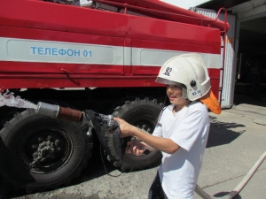 На встрече огнеборцы рассказали гостям о своей работе, показали пожарные автомобили и пожарно-техническое вооружение, продемонстрировали специальную одежду пожарных и спасателей. Самые бойкие из детей пробовали поработать со стволом, а любознательным представилась возможность досконально обследовать пожарный автомобиль и примерить одежду пожарного.