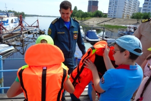 Инспекторы ГИМС также рассказали детям об основных правилах безопасности на воде и показали оборудование, применяемое ими для обеспечения безопасности или спасения людей на водных объектах.