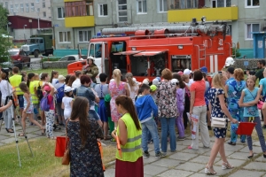 После этого детвору ждал сюрприз. К кинотеатру «Мир» подъехала пожарная машина, чтобы вартовчане смогли поближе познакомиться с профессией огнеборца. Пожарные 42 пожарно-спасательной части рассказали и показали, какое оборудование хранится в отсеках автомобиля и для чего оно предназначено. Кульминацией праздника стала демонстрация подачи воды из пожарного ствола.