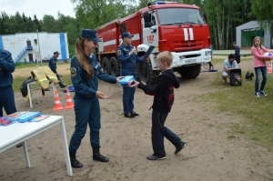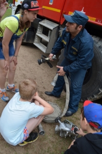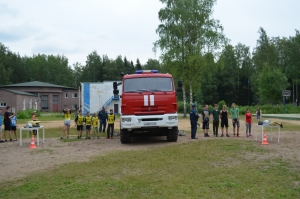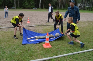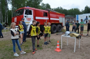 В пожарном квесте приняли участие 150 воспитанников детского оздоровительного центра. Они были распределены на команды, которым предстояло пройти этапы, которые включали в себя надевание боевой одежды пожарного, прокладку магистральной и рабочей линии, переноску пострадавшего и пожарную викторину.
