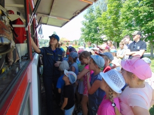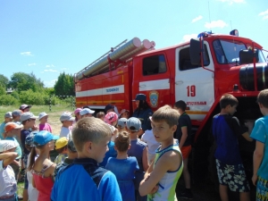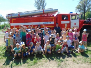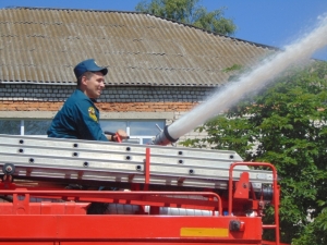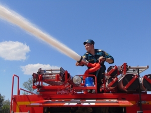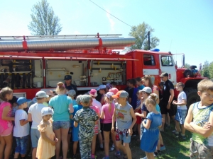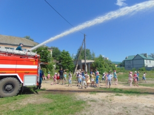 Также огнеборцы рассказали детворе о своей службе, о том, как устроена пожарная машина, показали, как можно подавать воду и ликвидировать возгорание.