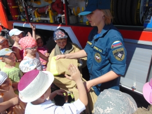 Для начала психолог 5 отряда федеральной противопожарной службы Мария Сухарева побеседовала с детьми на тему безопасного поведения, избежания несчастных случаев на пожаре, акцентировав внимание на способы борьбы с паникой.