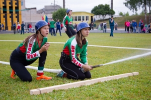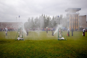 Данное командное упражнение отличается технической сложностью, требует от участников слаженных действий, и поэтому является одним из самых зрелищных. В развёртывании команде из 6 человек требуется на время установить мотопомпу на «водоём», проложить рукавную линию, подать воду и поразить мишени.