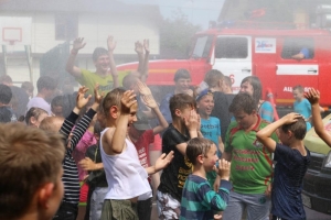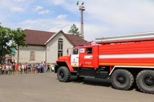 Ребят пригласили на площадку, где их уже ждала специальная техника, которую используют пожарные в своей работе. Сотрудники МЧС познакомили детей с устройством пожарной машины, экипировкой пожарных. Все это вызвало неподдельный интерес.