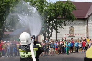 Вначале мероприятия прошла тренировочная эвакуация. По сигналу тревоги персонал и дети организованно покинули корпуса и собрались на безопасном расстоянии от условного пожара.
