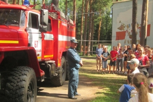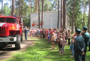 Сотрудники пожарной части № 67 четвертого отряда противопожарной службы Ярославской области побывали в гостях у детей в детском оздоровительном лагере «Орленок – 2» в местечке Кухмарь Переславского района.