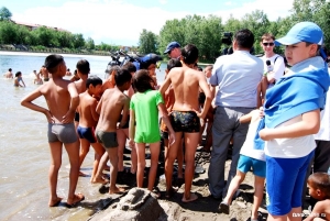 Начальник поисково-спасательного подразделения Тувинского поисково-спасательного отряда МЧС России Семен Рубцов и спасатель Кузел Кара-Сал продемонстрировали как работает водолаз, рассказали чем он экипирован. По словам Рубцова, до открытия пляжа водолазы обследовали дно протоки и не обнаружили неровностей и предметов, которые могли бы травмировать плавающих. Рубцов сообщил, что во время всего купального сезона на пляже будут работать два спасателя, один будет патрулировать водную гладь с лодки, другой – береговую зону с наблюдательной вышки.