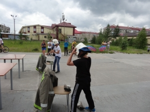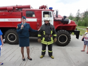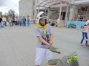 После традиционного приветствия ведущая передала слово почетному гостю – инспектору отделения профилактики пожаров 4 пожарно-спасательной части 2 отряда: «Ребята, пожар может случиться в любом месте, и в любое время. Поэтому к чрезвычайной ситуации нужно быть готовыми. Первое, что необходимо знать по каким причинам происходят пожары и не допускать необдуманных поступков, опасных как для себя, так и для окружающих. Второе - если пожар произошел, необходимо быстро и грамотно действовать в сложившейся обстановке. Спасение жизни и здоровья – это результат правильного поведения до прибытия пожарных и спасателей экстренных служб». Инспектор провела для ребят небольшой урок по основам безопасности жизнедеятельности, но так как программа познавательно-развлекательная, то следующем гостем мероприятия была Спичка. Вместе со Спичкой ребята отгадывали загадки, потом, разделившись на команды, прошли испытания «Кто быстрей оденется?», «Потуши костер», «Полоса препятствий».