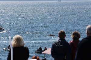 Используя средства громкой связи, зрителям напомнили о сроках навигации, правилах судовождения и ответственности за нарушения законодательства в области эксплуатации маломерных судов.