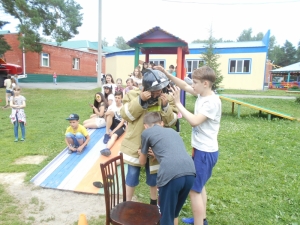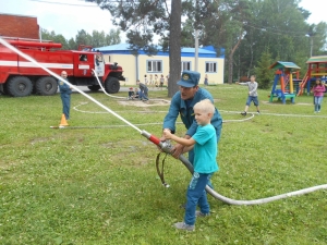 В гости к ребятам оздоровительного лагеря «Имени Ю. А. Гагарина» приехали сотрудники 25-го отряда противопожарной службы. Поздравив ребят с долгожданными летними каникулами и пожелав безопасного отдыха, сотрудники МЧС провели для них пожарную эстафету.