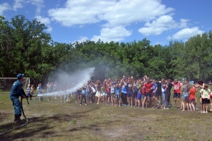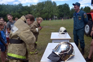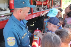 Несмотря на всю серьёзность темы, уроки получились совсем не скучными. В особый же восторг мальчишки и девчонки пришли от настоящей пожарной машины, приехавшей в лагерь, и от боевого снаряжения экипажа. Тем более что каждый ребенок мог представить себя настоящим спасателем и потушить условное возгорание из пожарного рукава.