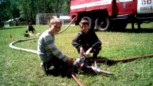7 команд-участниц проявили свои знания в области пожарной безопасности в ходе викторины, а продемонстрировать хорошую физическую подготовку они смогли во время эстафеты. Ребята на скорость надевали одежду пожарного: боевку, каску и сапоги, а затем на носилках переносили "пострадавшего" в безопасное место. После этого мальчики и девочки прокладывали рукавную линию и тушили условный пожар - сбивали мяч, установленный на стойке.