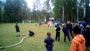 Во второй части мероприятия сотрудники МЧС предложили ребятам побывать в непривычной для них обстановке: они сообщили школьникам о том, что в лесу рядом с лагерем произошло "возгорание". Чтобы избежать беды, ребятам нужно было как можно скорее покинуть помещения лагеря и собраться в безопасном месте. Спасатели сразу предупредили детей: главное в такой ситуации не бояться и не паниковать, четко следовать рекомендациям сотрудников МЧС и указаниям старших. Все ребята ответственно подошли к заданию, и даже самые маленькие воспитанники лагеря ничуть не уступали в собранности и организованности ребятам из старших отрядов.