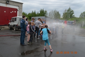 Так в городе Кемь, подобное мероприятие было проведено для ребят из детского профильного лагеря, созданного на базе МБОУ ДОД «Дом детского творчества». Провели её начальник Пожарной части № 22 Ольга Носкова, старший дознаватель отдела надзорной деятельности и профилактической работы Кемского и Лоухского районов Михаил Зимин, а также сотрудники дежурного караула.