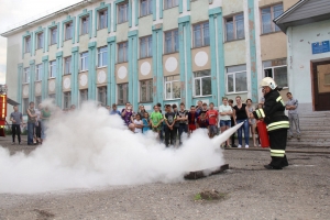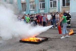 Познавательный урок начался с теории. Инспекторы Госпожнадзора рассказали ребятам при помощи, каких первичных средств пожаротушения можно справиться с огнем. После чего был показан обучающий фильм о том, как правильно вести себя в случае возникновения чрезвычайной ситуации.