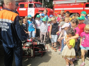 Начальник пожарной части Кутенков Александр Борисович провел ребят по зданию, показал помещения пожарной части и учебные классы, пожарную технику которая очень удивила воспитанников , ведь в их представлении пожарные – это супер-люди, которые только тушат и спасают, а учиться им совсем не обязательно. Дети задавали много вопросов об истории пожарной охраны, о профессиональной деятельности. Зрелищное действие произошло на плацу перед пожарной частью. Ребятам показали предметы боевой одежды, пожарно-спасательный инвентарь, разрешили свернуть и развернуть рукава. Даже девчонкам было интересно примерить пожарную каску. В заключение экскурсии ребятам рассказали о том, как вести себя в случае пожара и как не допустить его возникновения. Искренняя радость и любознательность детворы вызывала улыбки у сотрудников пожарной части. Встреча прошла в дружеской атмосфере и смогла разбавить будни пожарных, ведь их повседневная деятельность не предполагает общение с подрастающим поколением на такой ноте. Воспитанники также почерпнули много полезной информации из беседы с теми, кто ежедневно занимается тушением пожаров и спасением людей. Возможно, со временем знания о пожарной безопасности частично сотрутся из памяти детей, но доверие к пожарным и телефон 01 точно запомнятся навсегда.