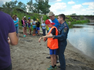Для детей было организовано практическое занятие по изучению вопросов безопасного поведения на воде, а также вопросов оказании помощи тонущему.