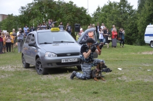Затем программу торжественного открытия продолжили коллективная фотосессия всех присутствующих и праздничный концерт. Шквал эмоций у ребят вызвали показательные выступления кинологов со служебными собаками, сотрудников СОБР и ОМОН, а так же аниматоров, переодетых в костюмы Миньона и героя «Физрука».