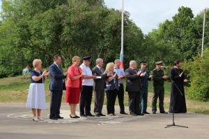 После теплых пожеланий и поздравлений, зазвучал гимн Российской федерации, под который 3 капитана старших отрядов юных патриотов подняли флаг. На минуту на площадке воцарилось тишина, казалось, что не существует ни единого звука, кроме разливающейся музыки гимна, а в небо тем временем устремлялись отпущенные шары.