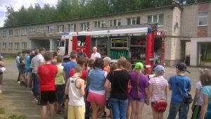12 июля 2016 года в рамках акции "Безопасное лето", которая проходит в Год пожарной охраны сотрудники территориального отдела надзорной деятельности и профилактической работы Костромского и Красносельского районов, совместно с огнеборцами пожарно - спасательной части № 1 г. Костромы и инспекторами Центра государственной инспекции по маломерным судам Главного управления МЧС России по Костромской области провели "День безопасности" для детей ОГБУЗ "Костромской противотуберкулезный детский санаторий" в местечке "Козловы горы" Костромского района.