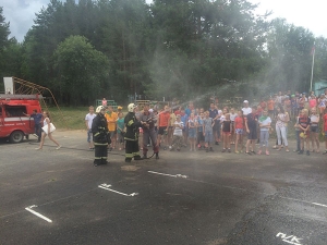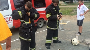 В начале мероприятия инспектор 10 ОНД Логинов И.А. напомнил детям правила пожарной безопасности и провел учебную эвакуацию детей из корпуса лагеря. После чего Бакланова А.А. специалист по социально-ориентированной деятельности отделения ВДПО провела для ребят эстафету «Юный пожарный».
