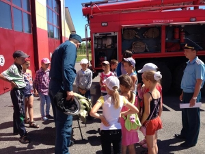 На базе пожарно-спасательной части № 30 поселка Прохоровка Белгородской области в рамках Года пожарной охраны прошла экскурсия для детей, отдыхающих в пришкольном лагере села Лучки.