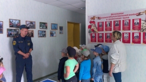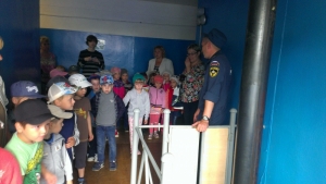 Традиционно профилактическое мероприятие началось с экскурсии по пожарно-спасательной части, которую провел для малышей начальник ПСЧ-1 Роман Качалов.