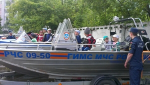 А вот как правильно вести себя на водоемах в летний период рассказал сотрудник ГИМС Евгений Жирнов. Самое основное и главное правило: «Купание без взрослых категорически запрещено!» - пояснил Евгений. При помощи спасательных средств: жилета и круга сотрудник ГИМС продемонстрировал - как происходит спасение пострадавших на воде. В конце мероприятия дети с большим удовольствием посидели в моторных спасательных лодках ГИМС.