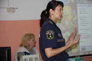 Особое внимание инспекторы обратили на то, как следует себя вести в случае возникновения пожара дома и в школе. Станислав Сергеев подробно ребятам разъяснил, как правильно должна проходить эвакуация из помещения, в котором возник пожар.