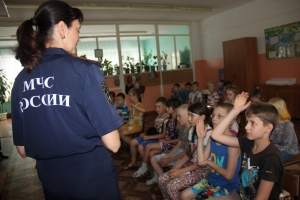 Инспекторы отдела надзорной деятельности и профилактической работы по Краснофлотскому и Кировскому районам города Хабаровска провели занятие по основам пожарной безопасности в пришкольном оздоровительном лагере Политехнического лицея.