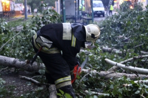 Так, например, сотрудники регионального МЧС оказывали помощь в расчистке трамвайных путей на улице Багратиона от упавших деревьев.