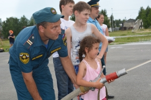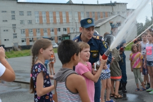 Для ребят старой части города сотрудники 5 отряда ФПС, отдела надзорной деятельности и профилактической работы и молодежного центра организовали пожарные эстафеты.