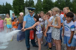 Государственный инспектор по пожарному надзору Дмитрий Плотников рассказал детям об основных правилах пожарной безопасности, а все желающие могли научиться пользоваться порошковым огнетушителем.