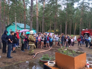 В ходе игры по станциям, детям в интерактивной форме напомнили правила поведения на воде и рассказали о безопасном электричестве. Станция «Пожарная охрана» завлекла всех участников эстафетой, включающей в себя надевание боевки на скорость, развертывание рукава и тушение условного возгорания.