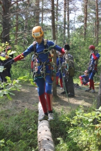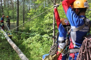 После этого, вместе с пострадавшим команда продолжала движение по лесной дороге, выходя к этапу «переправа по бревну». Далее предстояла комбинация сложных этапов на горе Белая. Подъем по склону с пострадавшим на спасателе, после - спуск по склону с пострадавшим и снова подъем. Поднявшись на верхний край бровки крутого склона г.Белая, нужно было пройти в северном направлении к началу этапа -«спуск с навесной переправы».