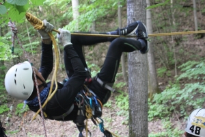 Следующий этап - «навесная переправа». По его завершению команда по лесной дороге выходила в базовый лагерь.