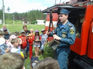 Сотрудники пожарно-спасательной части № 43 продемонстрировали пожарную технику, пожарно-техническое и спасательное вооружение, рассказали ребятам о целях и задачах подразделения МЧС, об использовании данного вооружения, о спасении людей на пожарах, на воде и других чрезвычайных ситуациях.