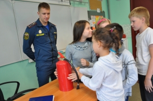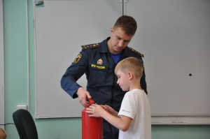 В ходе встречи дети узнали о мерах пожарной безопасности в период летних каникул и смогли увидеть, как работает огнетушитель, а также им напомнили номера, по которым нужно позвонить в случае возникновения пожара.