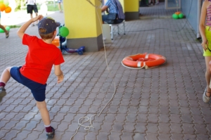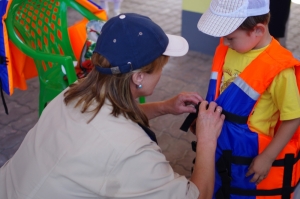 Вниманием детей в большой игровой зоне пользовался «островок безопасности» с яркой спасательной атрибутикой. О правилах пользования жилетами, спасательными кругами, «концом Александрова» рассказывал старший госинспектор по маломерным судам Иркутского районного инспекторского участка Дмитрий Мудров. Родителям, а также бабушкам и дедушкам сотрудники МЧС напоминали о том, что нельзя оставлять ребёнка без присмотра у водоёмов даже на непродолжительное время.