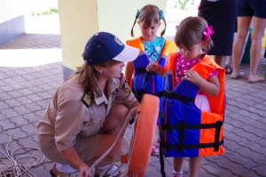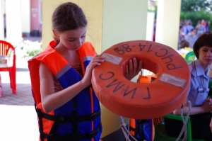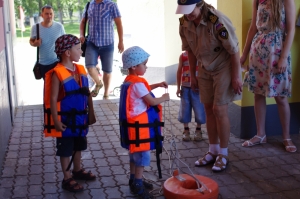 - В летние каникулы число происшествий с несовершеннолетними увеличивается, - пояснил он. – Поэтому сегодня мы обучаем детей правильному поведению на реках и озёрах, а взрослых предупреждаем об опасностях. Говорим, например, о том, что надувные круги и нарукавники – это мнимая защита во время плавания, т.к. в любой момент они могут перевернуться или лопнуть. Во время семейного отдыха для малышей нужно использовать специальные ненадувные плавательные жилеты.