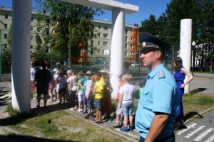 С утра в лагере зазвучала сирена, и по сигналу «Тревога» ребята и работники детского лагеря эвакуировались на безопасное расстояние от предполагаемого очага возгорания – на детскую площадку за центральным корпусом. Вожатые провели перекличку и доложили директору, что потерь нет, и все покинули здание. После практических занятий в актовом зале сотрудники части показали участникам мероприятия обучающий фильм о пожарной безопасности.