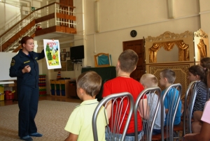 Специалисты говорили с детьми о правилах поведения при пожаре в квартире, на даче, в лесу. Подробно рассмотрели тему причин пожаров и воздействия опасных факторов на человека.