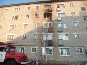 К тому времени в квартире на 4-м этаже уже был ликвидирован очаг возгорания. Обгорели лишь входная дверь, оконная рама и имущество в комнате, закоптились потолок и стены в подъезде.