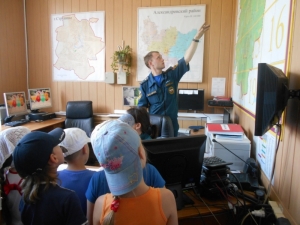 Далее детишек провели по зданию пожарно-спасательной части, показали комнаты отдыха, дежурную диспетчерскую службу и учебный класс, который очень удивил дошкольников, ведь в их представлении пожарные – это супер-люди, которые только тушат и спасают, а учиться им совсем не обязательно. Дети задавали много вопросов о профессиональной деятельности огнеборцев.