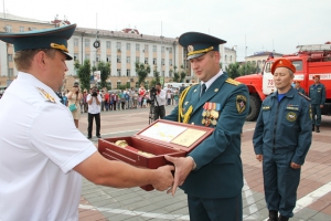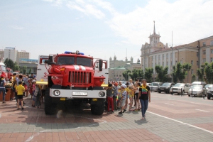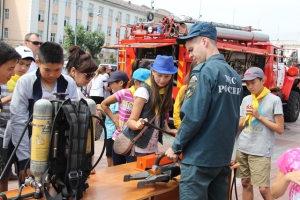 На центральной площади г. Улан-Удэ был развернут пожарно-спасательный городок. Детям и взрослым показали новые образцы пожарной техники и спасательного оборудования. Школьники примерили на себя боевую одежду пожарного, а также посидели за рулем пожарного автомобиля. И может быть, кто-то из ребят, присутствовавших сегодня на торжественной передаче пожарного ствола, в дальнейшем сделает выбор в пользу профессий пожарного и спасателя.