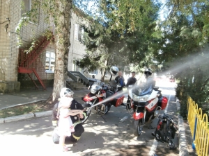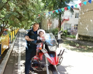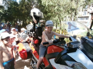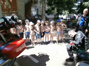 Кульминацией программы стала примерка детьми боевой одежды, а самое главное, что ни один малыш не упустил шанс посидеть на настоящем боевом мотоцикле.